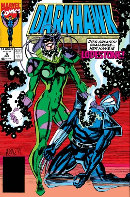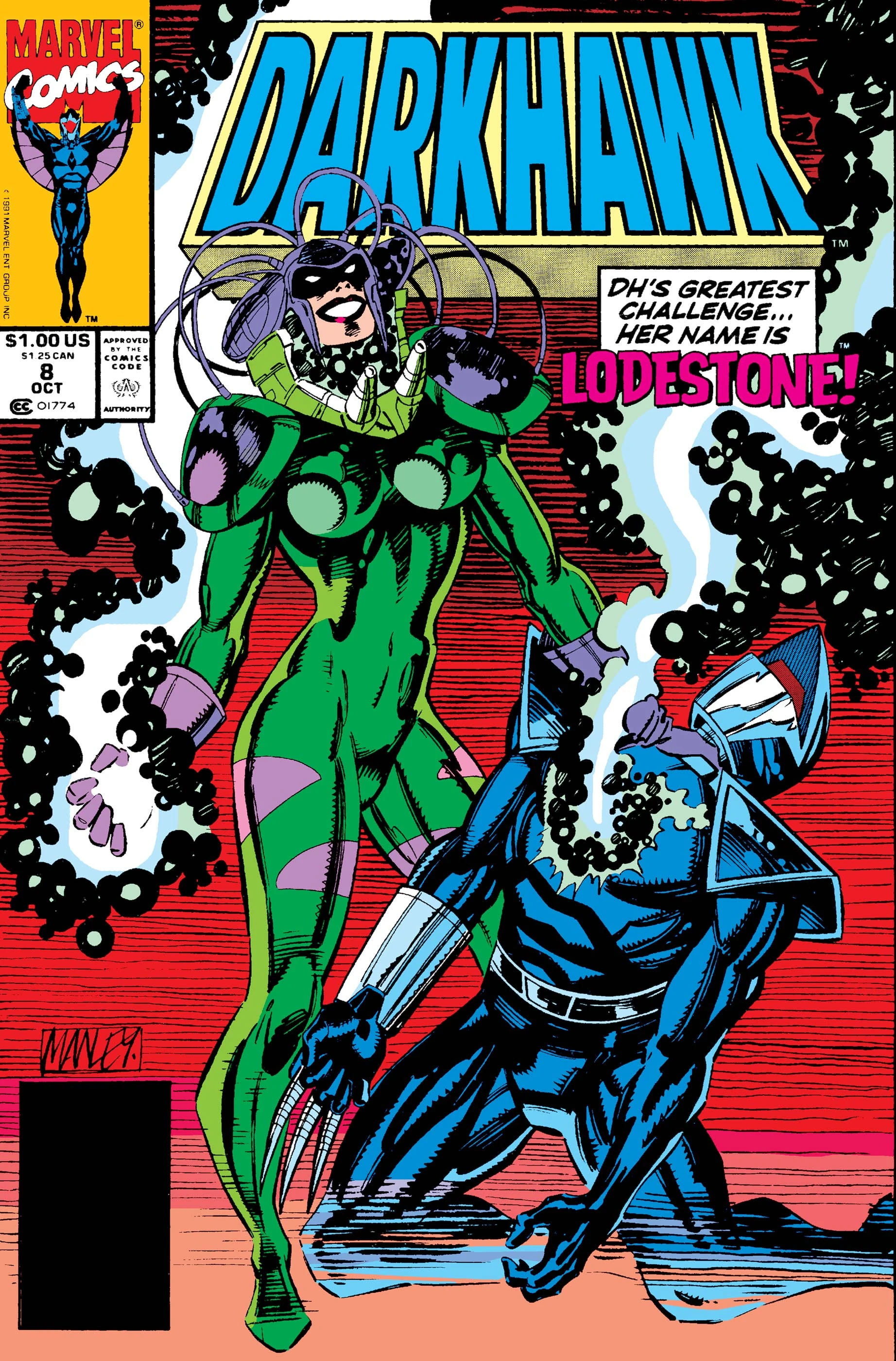 Chris lies to Lodestone who keeps looking for Darkhawk; Chris becomes Darkhawk and fights Lodestone; Darkhawk allows himself to be captured to protect bystanders and the paramedics who are picking up Headset; Darkhawk is taken to Bazin's headquarters and probed but escapes with Allegra Bazin's help.