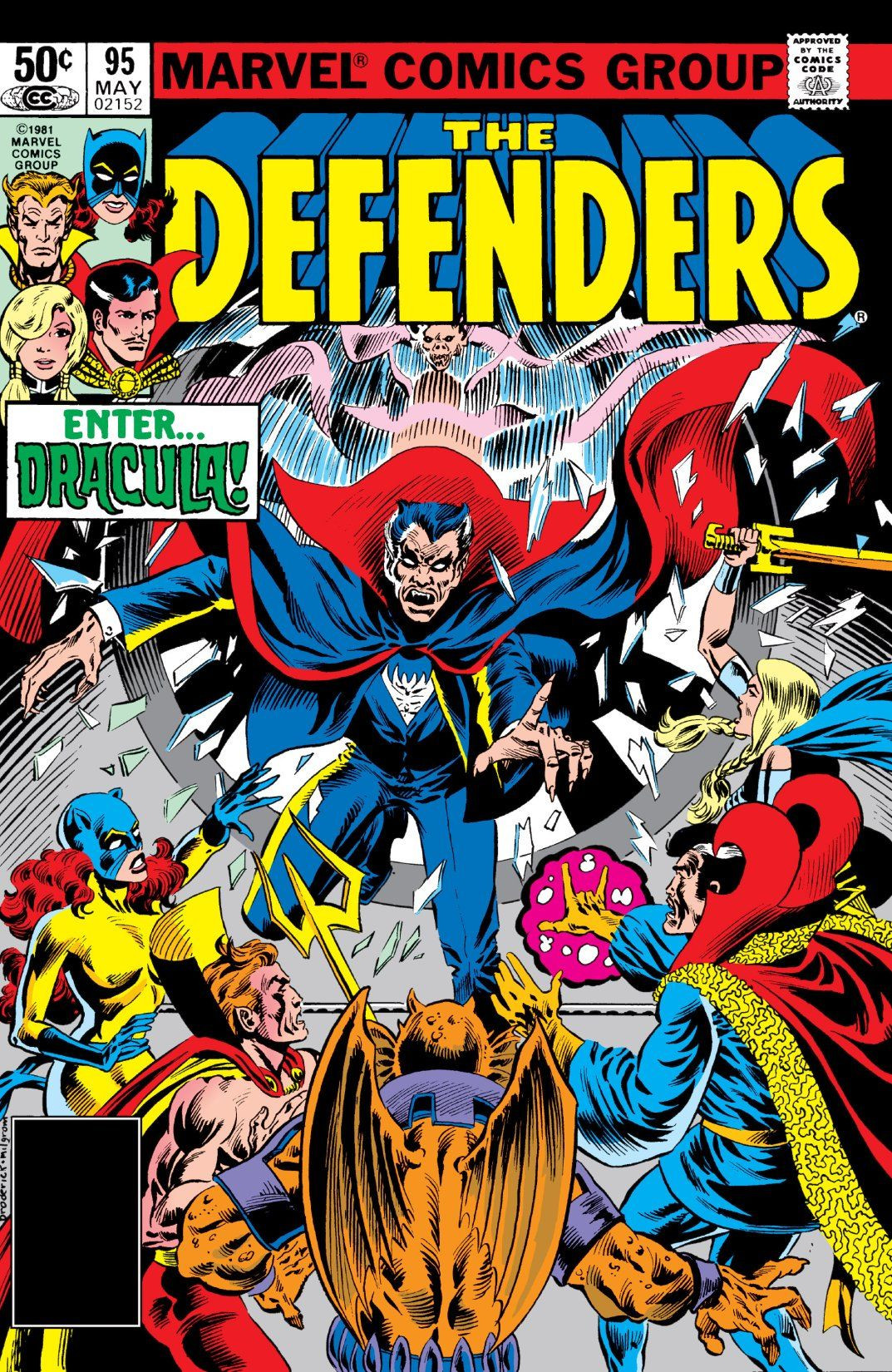 Back at the Sanctum, Valkyrie is summoned by her fellow Valkyrior and asked to return to Asgard to help them[1], but she refuses. Reuniting with her fellow Defenders, Dr. Strange tells them that according to the Book of Demonicus, Avarrish was a lesser demon and expresses his surprise at the creatures power despite that fact. Before they can investigate things further the Sanctum is invaded by the presence of Dracula, lord of the Vampires. He attacks the Defenders, catching them off guard until Son of Satan can use his powers to exorcise demons that have taken possession of the vampires body. Furious, Dracula explains that he was sleeping in his home in Transylvania when he was attacked and possessed by demons under the power of the Six-Fingered Hand. Suddenly, he overhears a lesser vampire named Grodski make a deal with the demon known as Puishannt to grant him mastery over all vampires over Dracula.