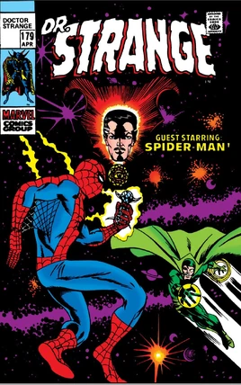 The two do battle as the henchmen bring Spider-Man back to Earth. Xandu regains control of the Wand of Watoomb and uses it against Dr Strange, who, realizing he’s overpowered by the Wand, leaves his physical form and uses his ectoplasmic spirit to aid Spider-Man. At Strange’s suggestion, Spider-Man grabs an electric wire and shorts out the two henchmen’s hypnosis. Dr Strange returns to his physical form and fights alongside Spider-Man, who trips Xandu with his webbing and retrieves the Wand. The Wand is then drained of its mystic power by Dr Strange, who also wipes the memory - and thus the evil intentions - of Xandu.Notes