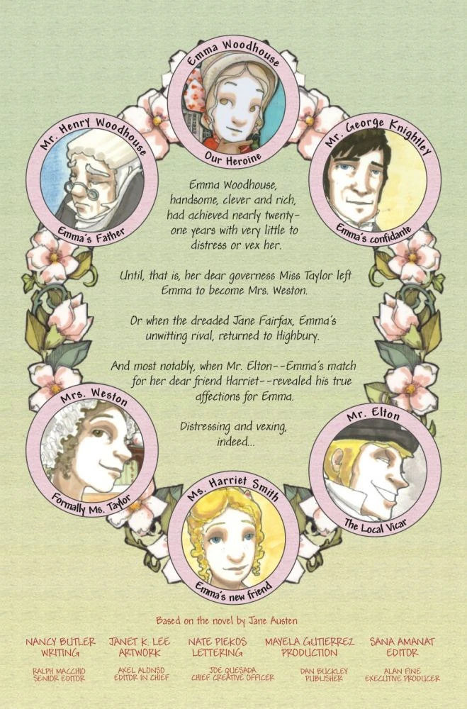 After a slight matchmaking blunder, Emma has vowed that Harriet will be her final social project! But with Frank Churchill arriving and Mr. Knightly showing interest in Jane, can Emma really keep herself from meddling? Award-winning author Nancy Butler and acclaimed illustrator Janet K. Lee bring Jane Austen’s classic to graphic life!