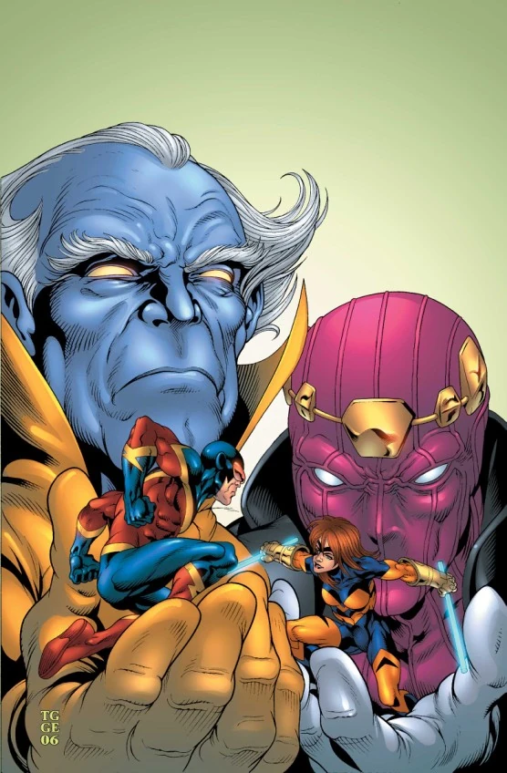 Upon returning to Earth-616 the Grandmaster transformed three men, Kinji Obatu, Kyle Richmond, and James Sanders, into Doctor Spectrum, Nighthawk, and the Whizzer, respectively. He also created his own Hyperion out of nothing but matter. He dubbed his new team the Squadron Sinister.[12]