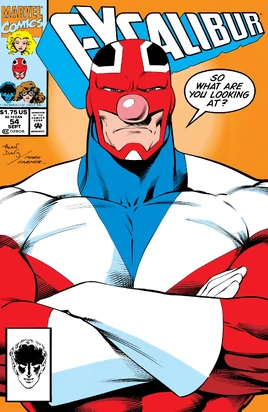 Hours earlier, in a picturesque country village, the entire population, of 27 pensioners, have disappeared, food still warm, TVs still on. Meggan can sense something, that they wanted to go. She shifts into a white rabbit to track them, and Captain Britain, Kylun and Cerise chase her, as Cerise detects a psychic signal luring Meggan in. As she dives down a rabbit hole, Captain Britain follows, finding himself in the cave. As his memory catches up with him, he wakes up, finding the daisies have grown around him and now hold him tight. In the distance, he spots Meggan, looking like Alice, skipping off with the Mad Hatter, March Hare and Dormouse. As he tries to break free, a smile materialises next to him, followed by the Cheshire Cat, that begins to psychoanalyse him. The daisies curl tighter, but he bursts free, and socks the cat on the jaw, knocking it unconscious to the floor. As he flies after Meggan, he sees Kylun fishing with the Mock Turtle, and Cerise playing Croquet with a flamingo. Then, in the distance, he spies Tweedledope of the Crazy Gang. He follows him at a distance, wondering how the Crazy Gang have managed to create this huge Alice in Wonderland themed world, as none of them have the power or money to do so. In the distance, he sees the tea party, with the villagers also dressed up like characters from the novel. He soars in, throwing the Crazy Gang away from Meggan. They try to stop him, saying they have committed no crime, but Brian counters by saying that they are kidnappers. Meggan shouts at him to stop, saying that talking to him is like talking to a brick wall, which appears between him and the Crazy Gang. Meggan explains that they were having a party, and that in this land, subconscious desires become reality, like Meggan generating the brick wall. When Brian asks why he was attacked, Meggan explains that subconsciously, he must have expected a fight and so the land provided one. But Brian still doesn’t understand how this world is possible. Meggan leads him to a secluded corner, where, surrounded by a unicorn and a swan, Joyboy is nestled in the arms of the Red Queen. As Joyboy turns people’s desires into nightmares in reality, and the Red Queen only dreams nightmares, her nightmares are cancelled out by Joyboy, who creates a dream world instead. As they return to the party, the villagers tell Brian that they wanted to be there, and they can come and sort out the misunderstanding, as long as Excalibur don’t reveal the Crazy Gang and their world, to which Brian agrees. However, the Cat has got to Brian, and he decides he has to see Betsy.