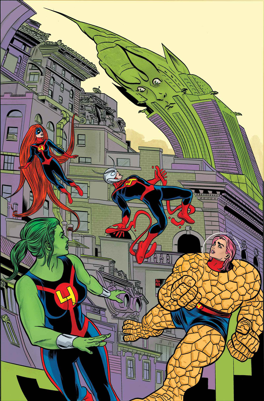 At first, the Fantastic Four try to convince the Impossible Man that the Future Foundation is not appropriate for any of his children. However, they begin to feel sorry for him and agree to at least meet the boy. They are taken to a nearby library where they meet the highly intelligent, but easily frightened Adolf Impossible. When they start pressing the boy about coming back to them to Manhattan, Adolf soon becomes upset and seals them all in boxes. As they try to break out, Medusa appeals to the strange boy and convinces him that part of her job is to make sure that he remains safe and in a caring environment. Convinced, Adolf Impossible stops his attack and agrees to accompany them. As they are about to head off, the Impossible Man tells Ant-Man that the original Fantastic Four will be home soon, it's just that their situation is complicated. With the impending doom coming their way, the Impossible Man tells the heroes that they will need his son by their side.