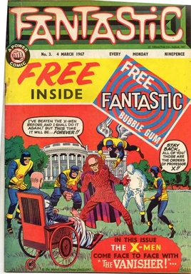 The time comes to battle the Vanisher, and this time it is on the front lawn of the White House. The Vanisher tells the X-Men to leave him. Professor X confronts him and tells him that he is a mutant as well. He says he is directing his powers at him. The Vanisher suddenly realizes that he cannot vanish, and he even has forgotten why he is there and who he is! The criminal mob that was with the Vanisher attacks. The X-Men easily stop their advance. Iceman covers them in a hole Cyclops creates, while Marvel Girl points their weapons at themselves. Angel then rounds up the last of them. The army moves in and takes over. Professor X congratulates the X-Men on a job well done!Appearing in "Iron Man Versus Gargantus!"