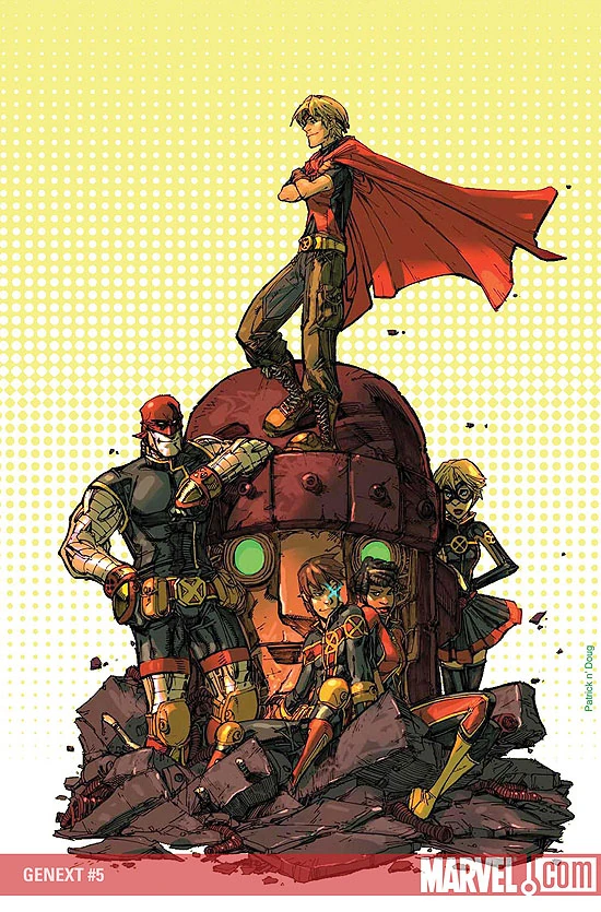 Up against the most unexpected of adversaries in an effort to save one of their own, GeNEXT isn't going to give up without a fight! The amazing conclusion of the miniseries revealing a world where time has passed for the X-Men in real time, written by legendary X-Scribe Chris Claremont, and drawn by the dynamic Patrick Scherberger! Will this newest class of X-Men survive their first time in the spotlight?