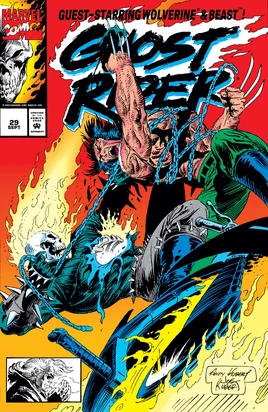 The Next Wave decide to break off relations with the Penner Security Group, and wind up crossing Ghost Rider, Beast, and Wolverine in the process. Wolverine battles Ghost Rider !
