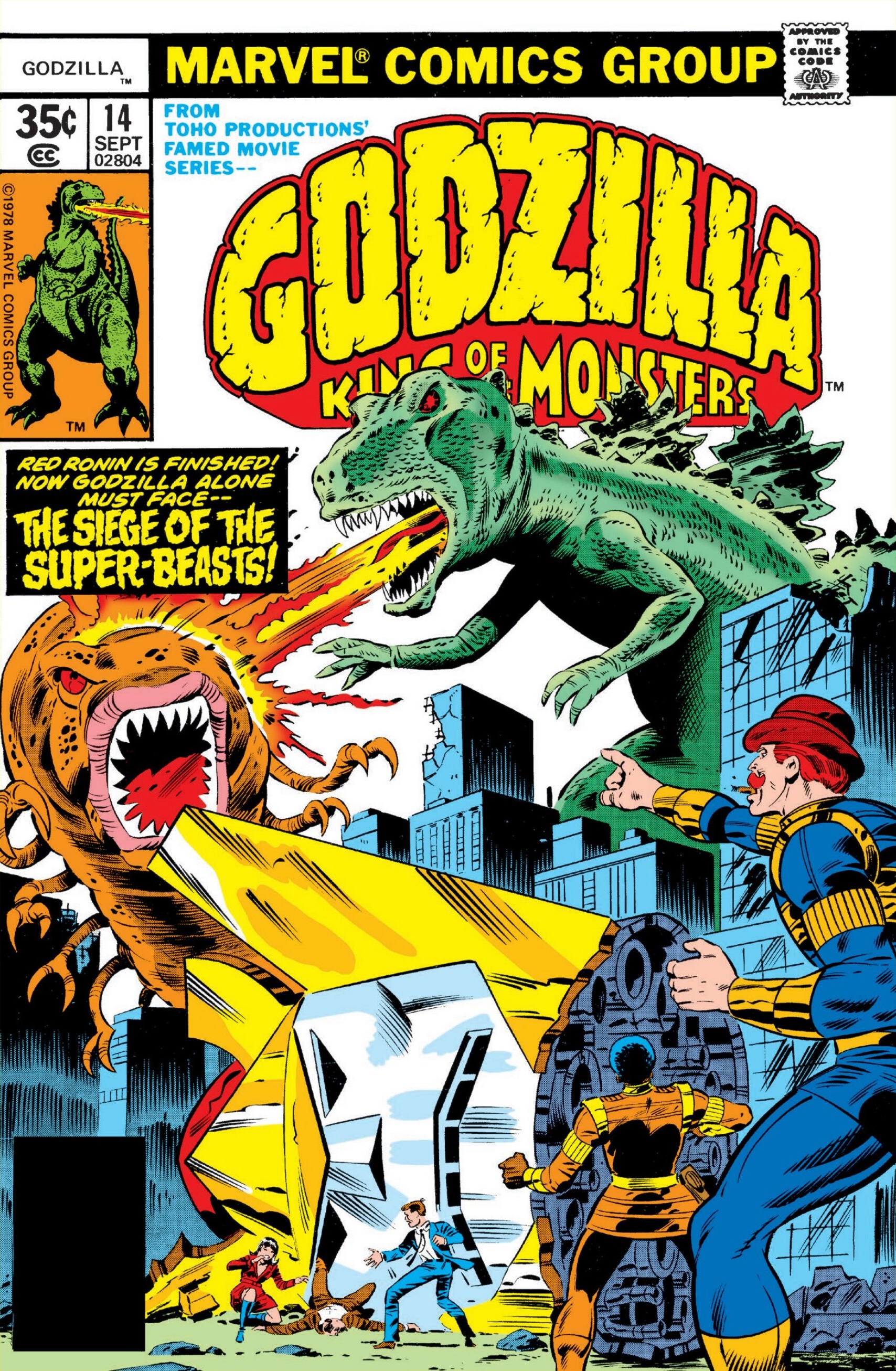 With the Red Ronin robot destroyed, Godzilla is the only force capable of stopping the now super-powered Mega-Monsters. After Jimmy Woo recovers the unconscious Rob Takiguchi from Red Ronin's head, the rest of the S.H.I.E.L.D. Godzilla Squad realize that Godzilla hasn't got a chance against the three monsters so Dum Dum Dugan and Gabe Jones decide to help Godzilla fight them one at a time.