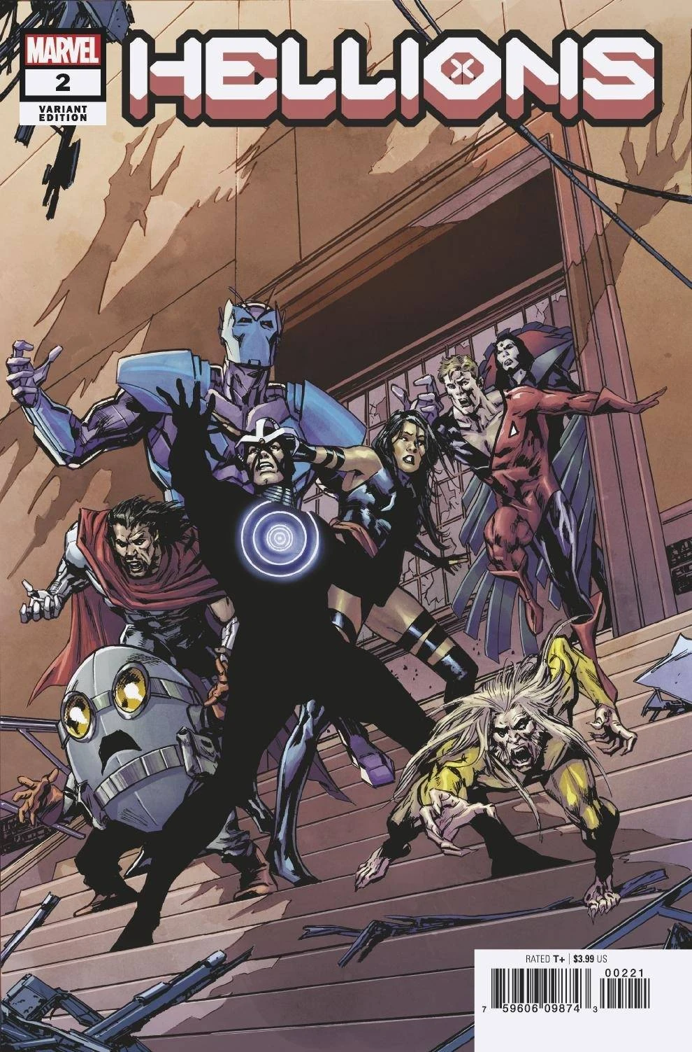 Police officers and a K9 unit greet the Hellions at the Essex State Home for Foundlings; they are there to supervise the team’s demolition of the former orphanage. Psylocke warns the sheriff that the Hellions are dangerous as Wild Child and the police dog growl at each other. Wild Child determines the handler is the alpha and attacks the officer to establish dominance. Greycrow quickly subdues his feral teammate and the rattled cops let the Hellions go into the building alone.
