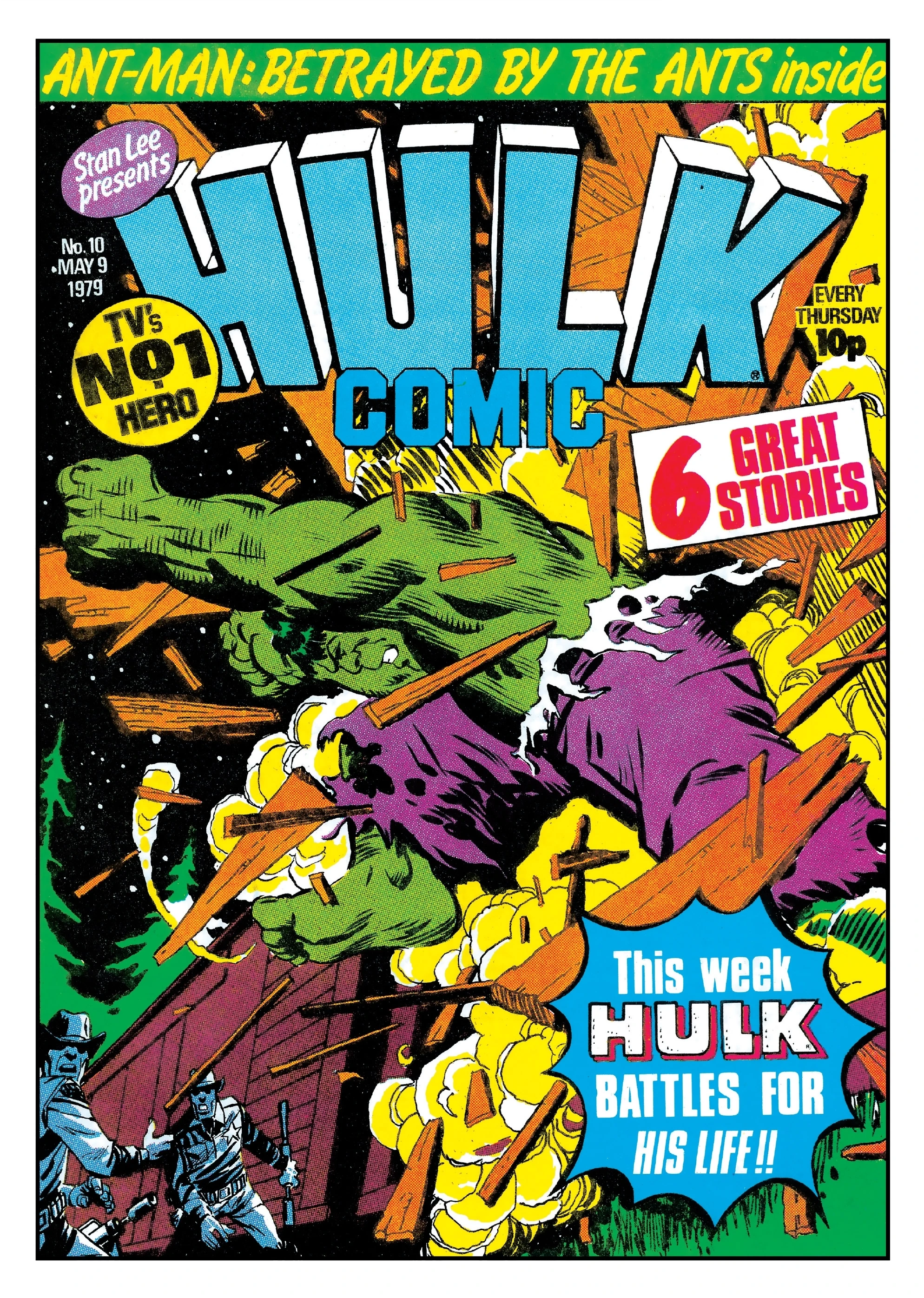 After the Hulk went on a rampage in a trainyard, a sheriffs department has tracked down the train the brute escaped on and have begun searching for it. By this point, the Hulk has reverted back into Bruce Banner. When they hear Banner moving around in the freight car, the officers fire tear gas into it. This serves only to trigger another transformation into the Hulk.