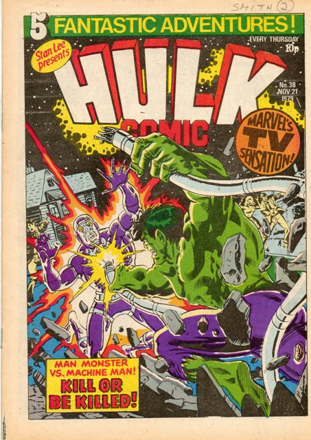 Inside, Peter Spaulding watches the battle from the window while the Hulk's ally, Fred Sloan holds him at gunpoint. Sloan demands answers and threatens to shoot the psychologist, however, Peter knows that what Fred is holding is merely a model of a gun. Taking the prop from Fred's hand, Peter demands to know what's going on. Fred explains how he and the Hulk believe that Machine Man kidnapped their friend with the help of the Corporation. Spaulding has had his own experience with the Corporation and explains how they were tricked and rushes to a phone to get some help. Just then, the Hulk and Machine Man come crashing through the wall. As the two combatants come crashing through the house, Peter decides they need to get out and find Colonel Kragg for help. Both he and Fred hop into a car and drive away. Seeing his friend leave, the Hulk tries to follow after them, but Machine Man pulls him back into battle.