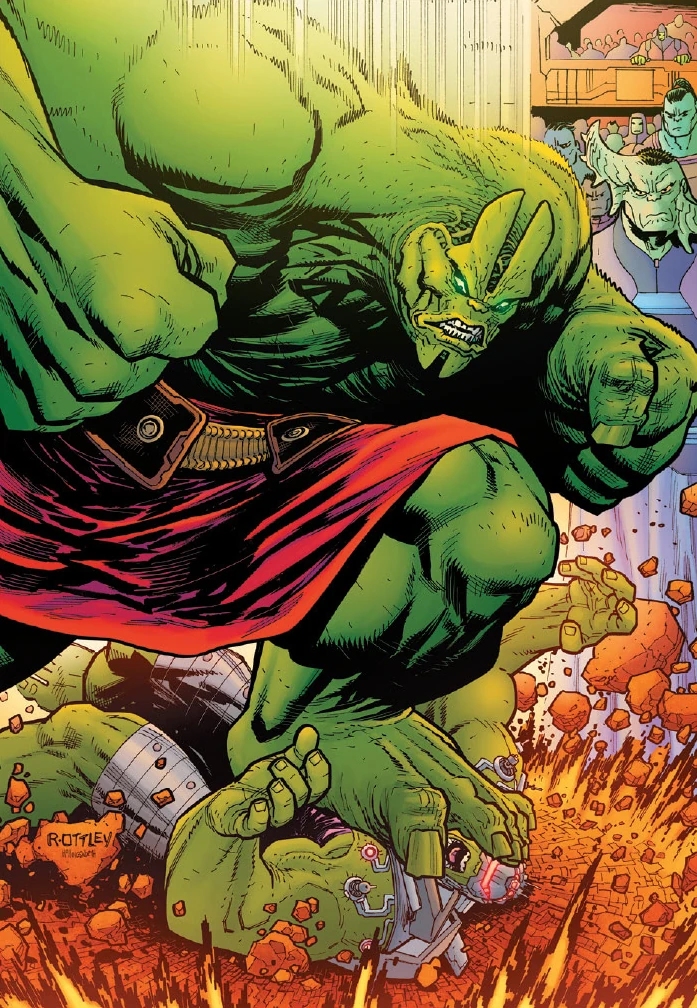 Starship Hulk has found what should be the ultimate paradise – an entire planet of Hulk-like creatures thriving under the heat of a gamma star. But Bruce can't shake thoughts of the past or the nagging suspicion that Monolith isn't being totally honest about what she wants from the Hulk. And then there's the matter of the planet's "welcoming committee"…