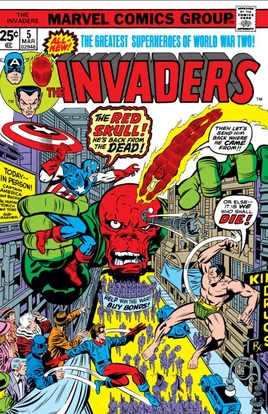 The Invaders (minus Bucky) unexpectedly attack and destroy an American defense plant while proclaiming allegiance to the Nazis. In a meeting with the President, FBI Agent Bill Stuart recounts how days earlier he had gathered the Invaders to take part in a War Bond parade arranged and financed by the industrialist Mr.Lyles. During their discussion, Bucky and Toro were looking over the comic books based on their exploits and the group considered the availability of America's other superheroes, including Patriot, Whizzer, Fin, and Miss America. At the parade, agents of the Red Skull attacked, but the Invaders quickly dispatched them. The Red Skull then appeared in a massive image in a floating portal in the sky. The Invaders attempted to fight, but the portal simply swallowed them up one-by-one, leaving Bucky, whom the Skull considered beneath his notice. Bucky was left in shock since the incident and the Invaders were next seen attacking the plant. After the recap, a recovered Bucky bursts into the Oval Office with a plan to deal with the Invaders that he'll only tell the President, but he and Stuart won't take him seriously.