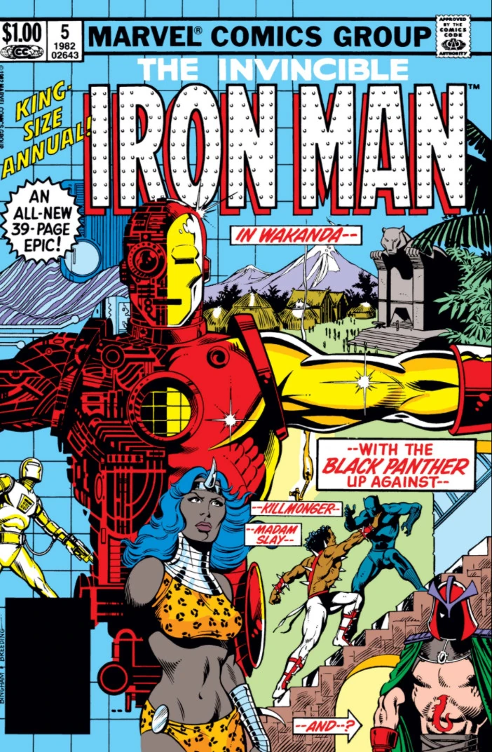 In Wakanda, Black Panther exercises with his guards. At Stark International, Iron Man tests some new government weapons. In Wakanda, a warehouse containing Stark International energy hologram crystallography equipment is destroyed. The next day Stark arrives in Wakanda where T'Challa informs him of the recent attack. After devising a plan, Stark attends a dinner where Madame Slay kidnaps Rhodes and Killmonger's men apparently kill the Black Panther. At the Black Panther's funeral Killmonger appears, taking the Black Panther mantle. Iron Man and Black Panther proceed with their plan, now that the LMD has drawn out the villain. They sneak back into T'Challa's palace just after Madame Slay informs Wakanda of Killmonger's return from death, the Black Panther arrives, surprising everyone. A battle ensues, and as the heroes gain the upper hand Madame Slay reveals she has Rhodes captive. Iron Man uses his life sensors to find Rhodes at the Vibranium mound, where a cyclotron has been set up. It's pounding the vibranium with gigawatt baryon beams, turning it into anti-metal, which will dissolve all metal in Europe, Asia, and Africa. Iron Man disables the machine and saves Rhodes. Meanwhile, Black Panther defeats Killmonger, whose body reverts to a skeleton. In China, the Mandarin realizes his plan has failed.