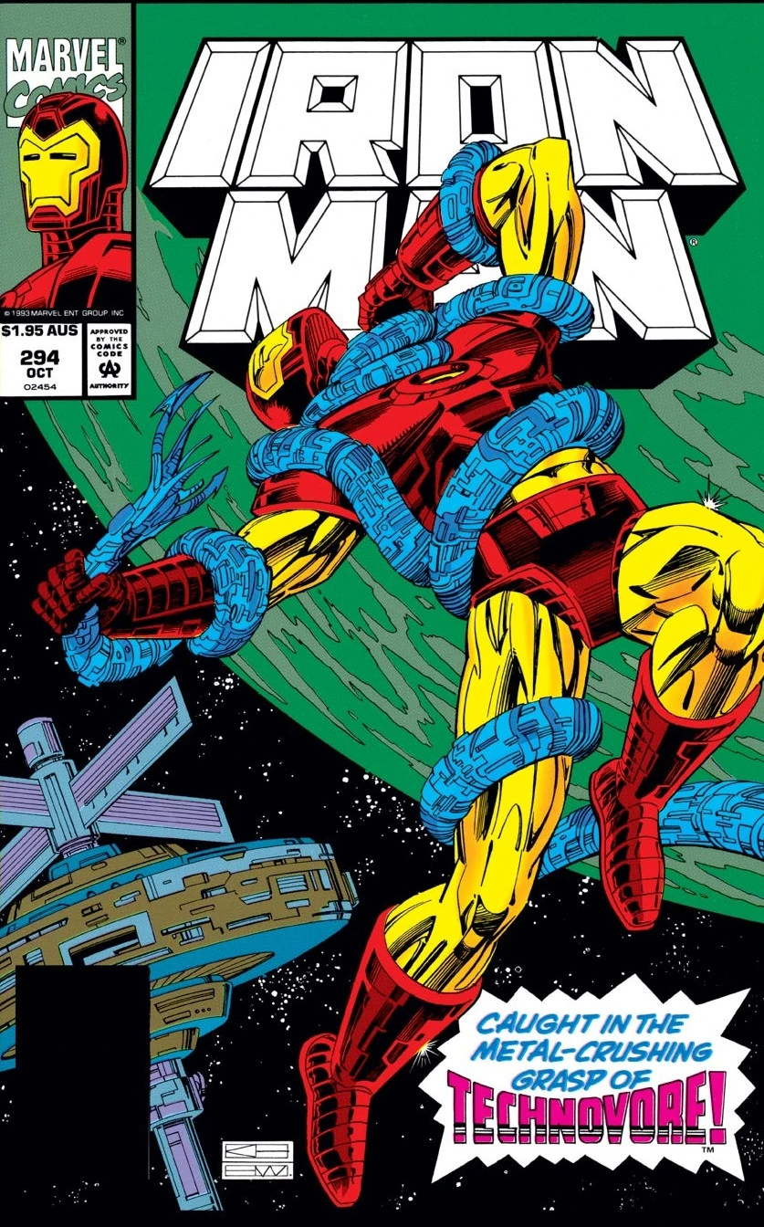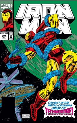 As Iron Man heads to the station, the Goddess takes him aside to offer him a place among her converts; Iron Man refuses and she promises punishment. Entering the station, Iron Man finds that the crewmembers are now techno-organic creatures and they attempt to consume him as part of their quest for completion. Iron Man renovates his armor arsenal using the station stores, but after destroying the creatures they reform themselves into a single being calling itself the Technovore.