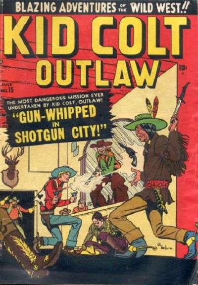 Going to the saloon, Kid Colt hears Blast tell everyone held prisoner that he will match his shotgun against a six gun and win. Kid Colt interrupts the speech and challenges Blast who pulls his shot gun on the hero. Kid Colt is faster at the draw and fires into Blast's shotgun barrels causing the rifle to blow to bits. Kid Colt then guns down Blast's men and tells Blast to wait for the sheriff to show up., telling him that the sheriff will accept his challenge and get his spare shotgun.