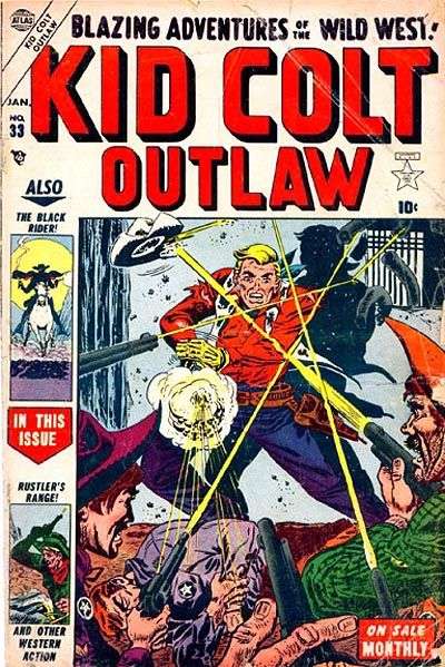 Disgusted by this display, Kid Colt wipes out the entire band of outlaws and then takes the girl back home to her father.