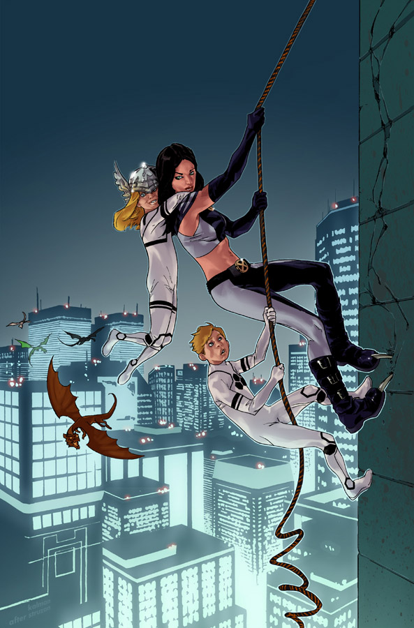After the team returned to base following their escape from the Purifiers, the Shi'ar, having learned that Jean Grey had returned, attacked and took her captive. Laura fought in her defense along with the rest of the team, but was neutralized, and the Shi'ar escaped to put Jean on trial for actions her elder self-committed while in possession of the Phoenix Force.[89]