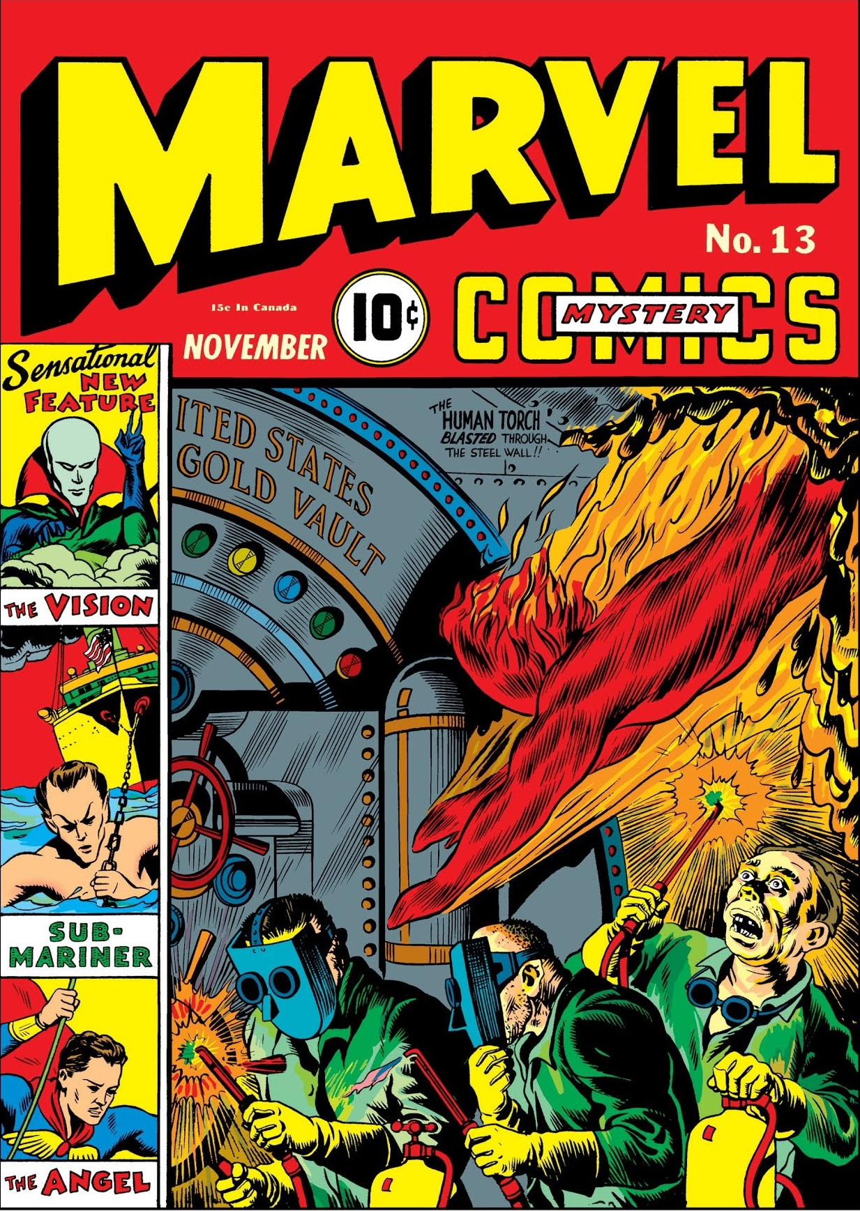 The Torch intervenes in their attempt to loot passengers and take female hostages, however the Torch is soon overwhelmed and knocked out. Taken prisoner he is tossed in a cell with Mr. Morton the man who design the subway, the crooks confident that the Torch's flame will melt the tunnel unleashing the Hudson River above them in the tunnels. The Torch learns that Morton became embittered about the subway after both his sons were killed in it's construction and sought to get people to stop using the subway by building a series of tunnels and hiring the men to cause the subway wrecks. However, the men took over the operation and began using it to their own advantage. Morton agrees to help the Torch in anyway possible to bring the men to justice.