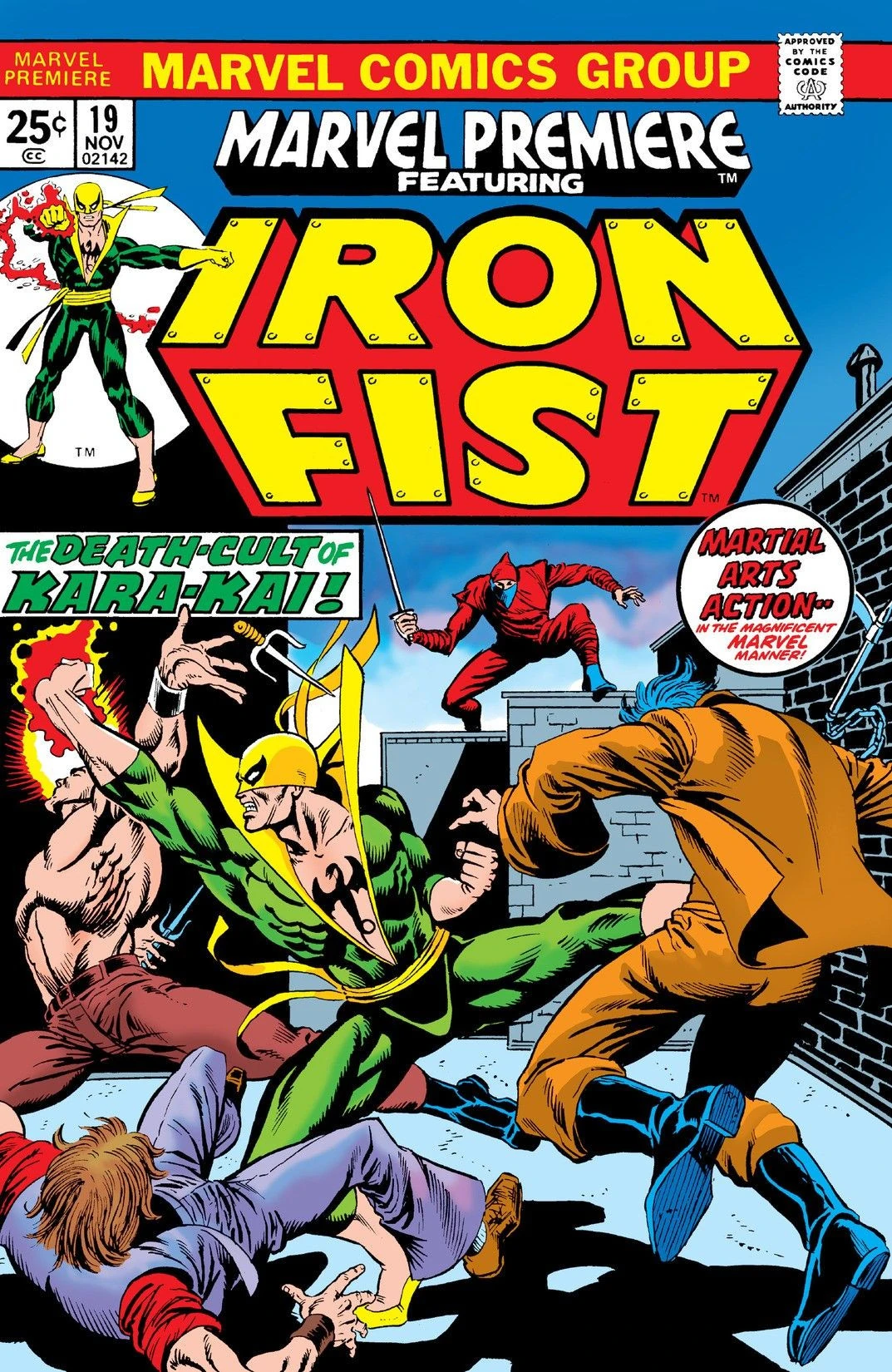 Iron Fist is concerned with clearing his name and proving to Joy Meachum that he did not kill her father. He calls her, however she is not able to talk and tells him to meet her at the arcade in Times Square. Iron Fist goes, not knowing that Joy has her uncle Ward set up a trap for him there. Attacked from all sides by a number of thugs, Iron Fist is aided by the mysterious Ninja, who after helping gives Iron Fist a newspaper with a front page headline that identifies that Iron Fist is wanted by the police for the murder of Harold Meachum.