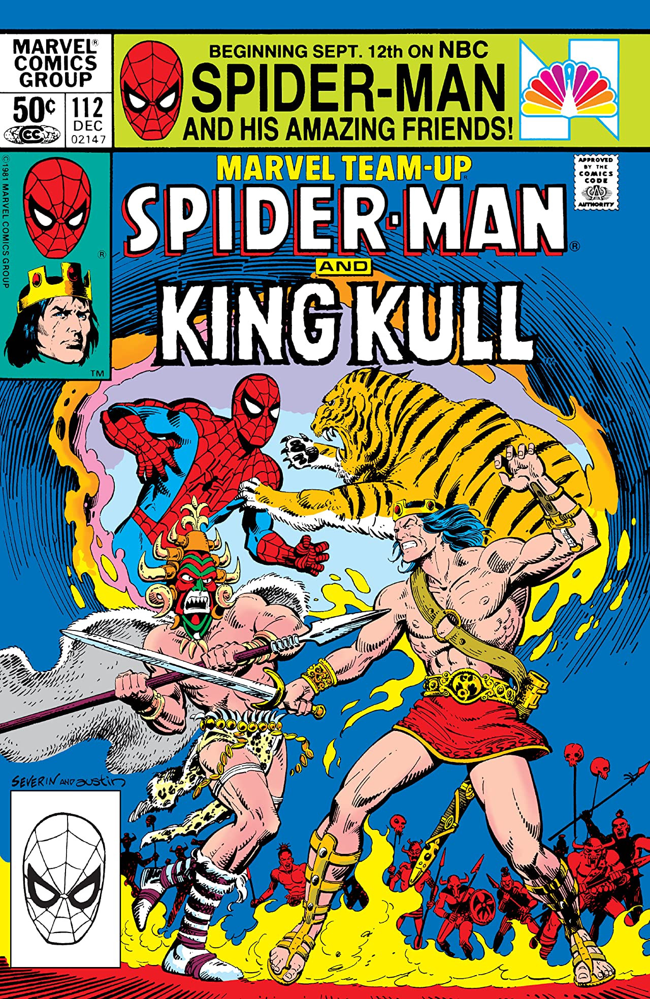 He is pleased to discover that when he takes over a host, the person gains his spider-powers. The citizen sheds his boots and quickly clambers up to a roof, from which he leaps down onto the assassin before he can shoot his arrow. Kull and his right-hand man, Brule the Spear-Slayer, note what happened, and Kull summons the man who saved him to his court and is astounded that the man has no idea what he did. The man says that something seemed to enter his body, but he can remember nothing more. Uttering an oath, Kull admits that it smacks of sorcery. There are many wizards who would like to see him dead, he muses, but none, as far as he knows, who would aid him. Then Spider-Man, through Brule, asks Kull for the mystic potion to counter the effects of the serpent venom. But Tu, Kull's advisor, explains that there is no such potion in Valusia. At this Spider-Man becomes angry and grabs Tu by the lapels. He has journeyed 20,000 years into the past seeking a cure, he rages, and now he is told that the cure does not exist. Then his time in Brute's body expires, and he leaves Brule standing before Tu, who is on his knees begging the "great spirit" not to do away with him. Brule is bewildered, but after Kull explains what happened, Brule says that there is indeed a man who has such a potion. He is Ju-Lak, a Pict like Brule, and an outcast shaman. His knowledge of the dark arts is as great as his lust for power, says Brule, but he is quite insane. Kull feels that he owes his life to whatever spirit possessed his rescuer, so he arranges an expedition to the Pictish mountains to find the shaman. Soon Kull and Brule are at the head of a column of horsemen headed into Pictish territory, with the astral form of Spider-Man floating invisibly above them.