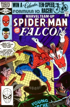 As Spider-Man fights off his attackers, the scuffle is interrupted by the arrival of the Falcon. However, the hero hasn't come to help Spider-Man, but to tell him to butt out of his territory, pointing out that nobody cares about the fates of African-Americans in the ghettos. Not in the mood to argue against the Falcon, Spider-Man departs. The coach later reports to his employer, who is furious about the involvement of both Spider-Man and the Falcon and warns him to straighten out the Young Watchers to avoid this unwanted attention again. Later, Sam Wilson's nephew, Jim, pays a visit to his uncle to tell them that something about the Young Watchers is not on the up and up. He points out that the group has an easy time capturing criminals. Sam thanks Jim for the information and advises his nephew to stay out of trouble.