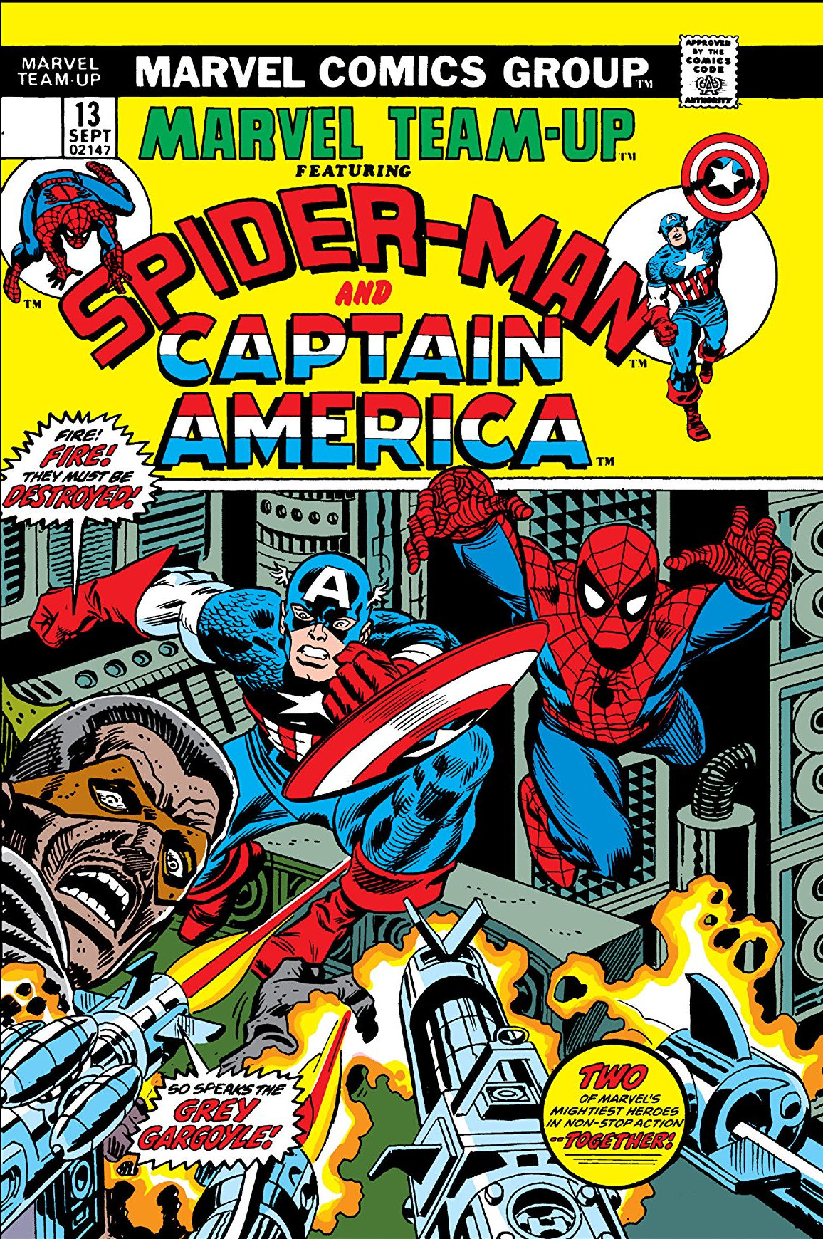 Fury tells them that while Cap's mission was to stop AIM from getting ahold of a new telemetry system, there were three of the devices made and that A.I.M. managed to snatch the other two while Cap went after the first. However, Fury anticipated this and planted homing devices on them and they were able to track A.I.M. to a secret facility in Queens. They then begin organizing an attack, which Spider-Man is hesitant to take part in, but Fury convinces him to do so for the sake of national security. Meanwhile, at the A.I.M. facility hidden below the site of the old World's Fair, the Grey Gargoyle is plotting to get revenge against Captain America for stranding him in space. He recounts that he was trapped in space until he was able to contact A.I.M. and had them shoot down his vessel so that he could crash-land in New York. Before they can launch their own missiles, Captain America, and Spider-Man attack. However, during the course of the battle, the pair are turned into stone by the Grey Gargoyle.