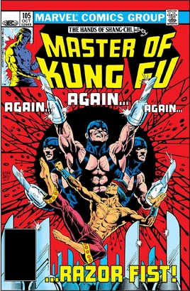 That night, Shang-Chi and Leiko Wu sneak into Pavane's lavish estate to warn her. Pavane doesn't trust their motives and a fight ensues. Suddenly, a second Razor-Fist enters the house and Pavane has to divide her attack between fighting Shang and Leiko, as well as Razor-Fist. Shang diverts his attention away from Pavane and concentrates on the new threat. Razor-Fist tries to strike him, but lodges his blade into a table-top, allowing Shang-Chi the chance to put him down with a heavy kick to the chin. Once everything settles down, Pavane informs Shang-Chi that there are actually three men who have assumed the name Razor-Fist; all three of whom are triplets.