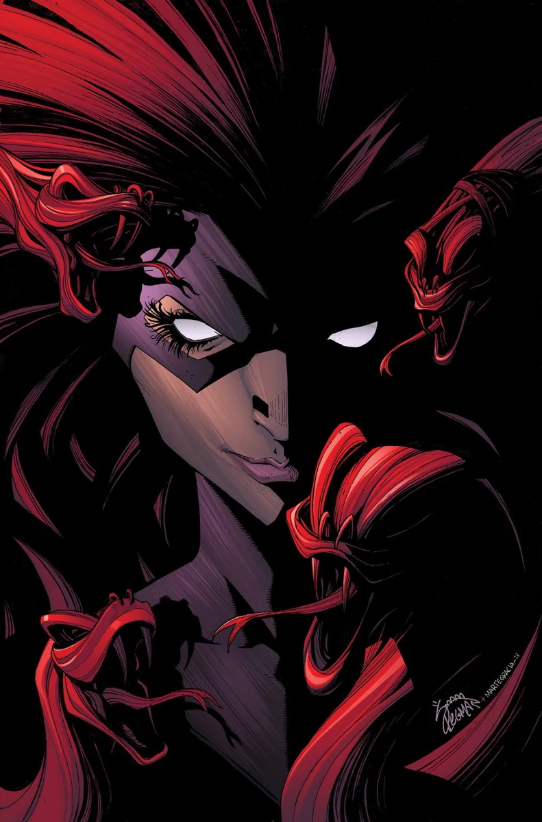 She next superseded the authority of the Avengers' representative, Janet Van Dyne, and used the control over her hair to create a whipping motion so fast that it produced miniature sonic booms, which Venom was especially vulnerable to. While Henry Pym tried to dissuade Medusa from continuing the punishment, Venom was able to stab Medusa through the thigh. Medusa later saved the team during the sudden crash-landing of their space vessel by absorbing the majority of the impact with her hair.[23]