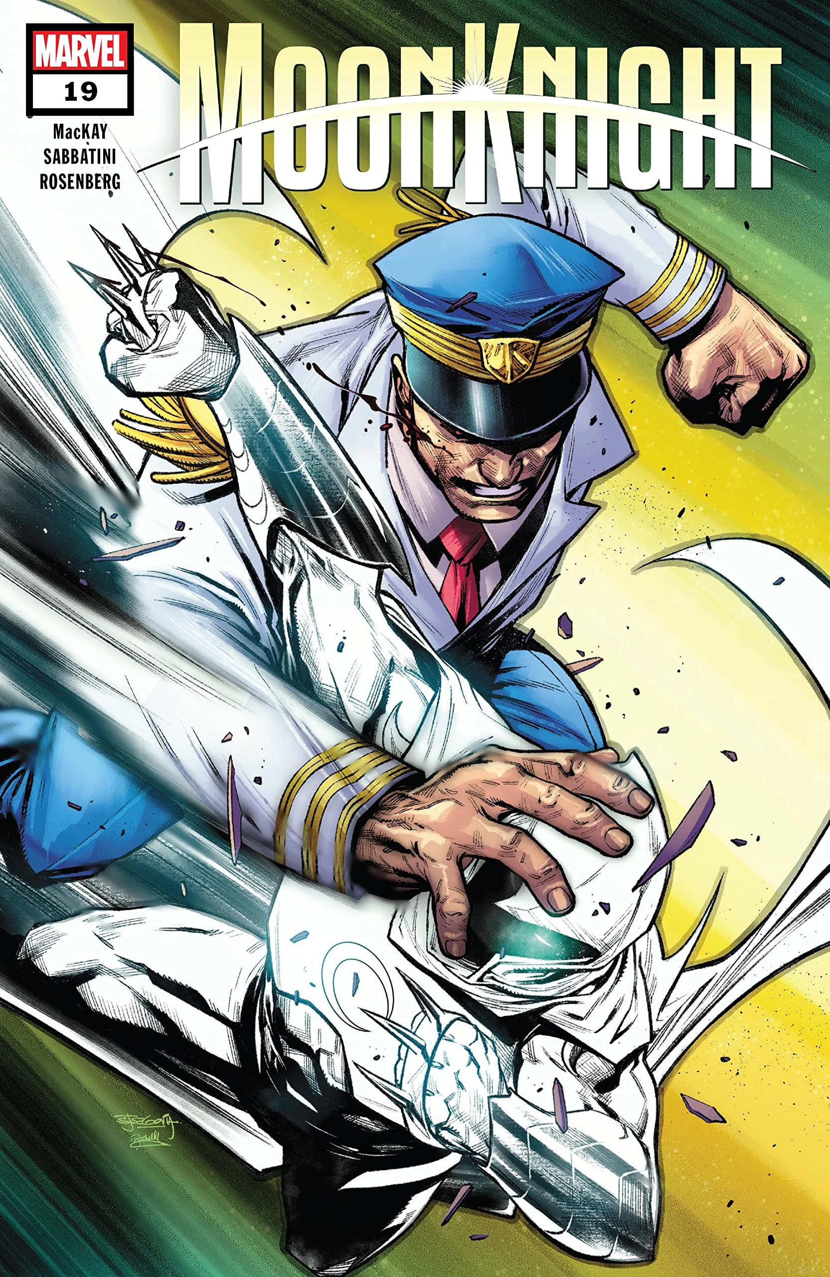 In Myrmidon, Plesko admits he has made a study of guilt as a doctor and therapist to help others and himself with his past. So he asks Zodiac his thoughts and is surprised the madman doesn't recognize guilt. Zodiac sees it as a cudgel of societal conditioning, a punishment by the world for people to inflict on themselves, a policeman in their heads. Zodiac admits he hates cops, so he killed "Officer Guilt" and was disgusted to see he had his face, so he got a new face and name, now trying to keep up the "good work." In Subterranea, the Moloids rise up against their jailers, and Moon Knight is throttled by a punch he hasn't fought in so long, Commodore Donald Planet. The commodore finds it fitting to fight Moon Knight underground, already below his grave, tanking all the hero's attacks. When inquired as to why he was there, Commodore Planet bearhugs Moon Knight and admits he was doing a job but is unaware of the client. Satisfied by the intel, Moon Knight directs Hunter's Moon to attack Commodore Planet's ears to stun him, with Hunter's Moon chastizing Moon Knight for being cavalier with his life.
