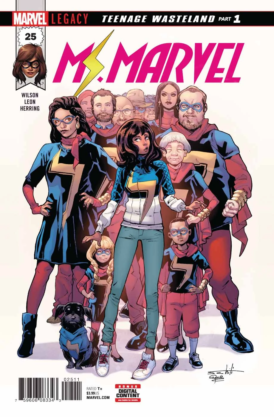 Jersey City still has a need for a super hero, but why has KAMALA KHAN, a.k.a MS. MARVEL, vanished? In the wake of her disappearance, the city’s newest hero RED DAGGER and even ordinary citizens attempt to carry on her Legacy of heroism. MS. MARVEL is nowhere…but also everywhere at once! And when an old enemy re-emerges, will anyone be powerful enough to truly carry the MS. MARVEL legacy but Kamala? PLUS: Includes 3 bonus MARVEL PRIMER PAGES!Trivia