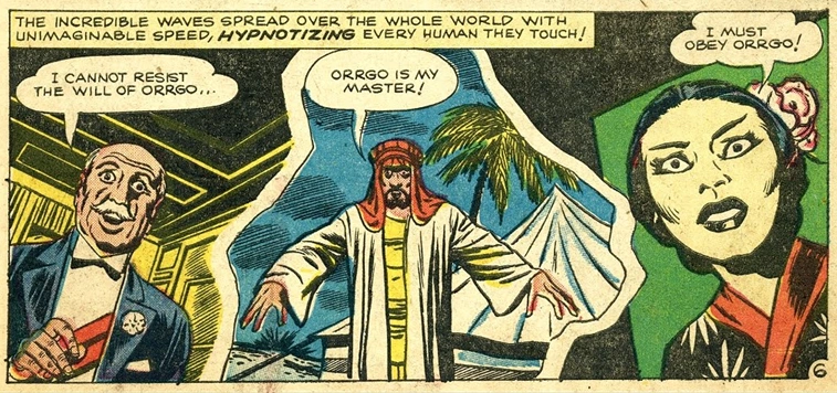 Two billion miles from Earth the imperialistic race, the Mentelleronites,[citation needed] discussed their plan to conquer the planet Earth. Immediately, one of the Mentelleronites volunteered to be the planet's invader. This was Orrgo. He believed his race to be so superior to the humans that he could accomplish the feat single-handedly. Teleporting himself across the galaxy, Orrgo materialized in a circus in an American town and told the people present to bow to him as he had come to conquer the Earth. The police and military were called out to oppose Orrgo, but no one proved capable of withstanding his awesome power.