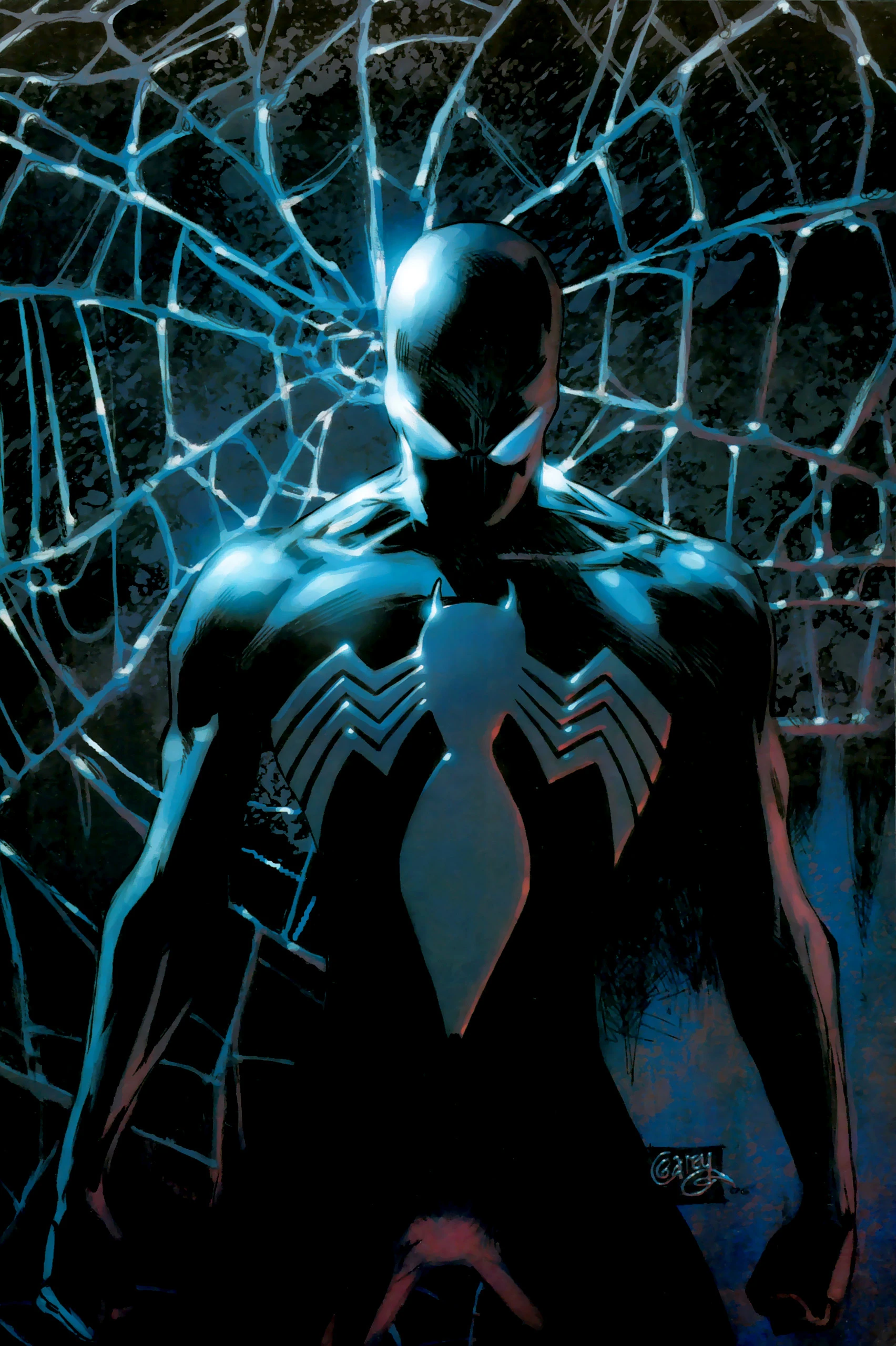 Spider-Man first acquired the black symbiote costume during the first Secret Wars. When his traditional red-and-blue suit was damaged, Thor and the Hulk informed him of a machine that could repair it. However, the machine released a black sphere that, when Spider-Man touched it, covered his body and, possibly reacting to his thoughts about the new costume worn by the second Spider-Woman, created a new one to him, dissolving the old ragged one in the process.[256] After Reed Richards informed him that it was an alien symbiote, Spider-Man tried to get rid of it.[257] Eventually, the suit bonded with Eddie Brock and they became Venom, one of the deadliest of Spider-Man's foes.[259] On other occasions, Spider-Man temporarily recovered the black costume: in the second time, a group of symbiote-possessed Brood attacked the S.W.O.R.D space station and Spider-Man and the X-Men investigated. During the attack, Spider-Man bonded with one of the symbiotes that was being controlled with the help of No-Girl in order to take on the symbiote-controlled Deathbird, though he was separated from it afterward so that he was not possessed by it;[119] in the third time, a Poison Punisher forcibly bonded Spider-Man to another symbiote so he could be assimilated by the Hive, though after the Poisons' defeat, he was separated from it and it was returned to the planet Klyntar.[121] Spider-Man bonded with Venom again when Norman Osborn used the Carnage symbiote to become the Red Goblin. Their re-bonding made Spider-Man actually care for the Venom symbiote, at least to some extent - this could be evident when they both got separated, with Spider-Man saying to it to avoid the fire around them.[398]
