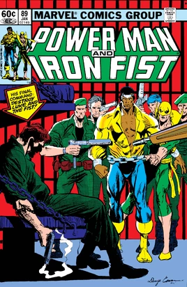 When Power Man arrives, Iron Fist shows him the key and they find out that it's for a room at the Lasko Hotel. When the police arrive on the scene, they find that Hawkin's men have taken all the Hotel guests hostage. However, what they are unaware of is that Iron Fist managed to infiltrate the hotel and is posing as one of their intended bartering chips to freedom. As Power Man and Iron Fist fight their way through the men, a lot of them escape into the hotels safe and seal themselves inside. When Iron Fist punches through with his Fist of Fury, he finds that the remaining members of the group had taken cyanide as well, choosing death over capture as well.