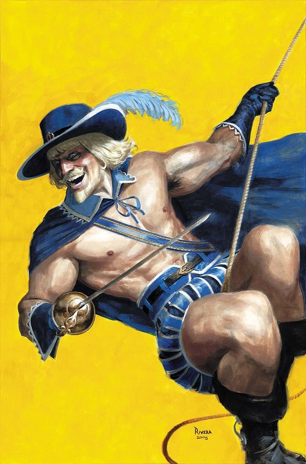 Roy Chambers grew up in on a small farm, and as a youth growing up in the Great Depression he saw everything drying up and longed to be rich and famous. He desired to move to Hollywood and become rich and famous, even though others believed that he would find nothing but failure. By the 1940s he began trying to live that dream, inspired by the comic book character known as the Scarlet Sabre,[5] he took on costumed heroics as a platform to his quest for fame and became the Blue Blade. However, the rest of the costumed hero community referred to him as a "tourist", a hero who was only in it for fame and glory.[1]