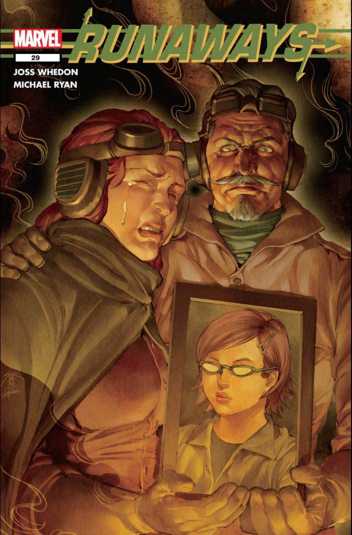 The Runaways find themselves in the middle of a super-powered gang war in 1907! To make matters worse, two figures from the Runaways' past show their faces. Mr. and Mrs. Yorkes don't believe that the Runaways played such an innocent role in their daughter's death. Heads will roll! Part 5 (of 6)