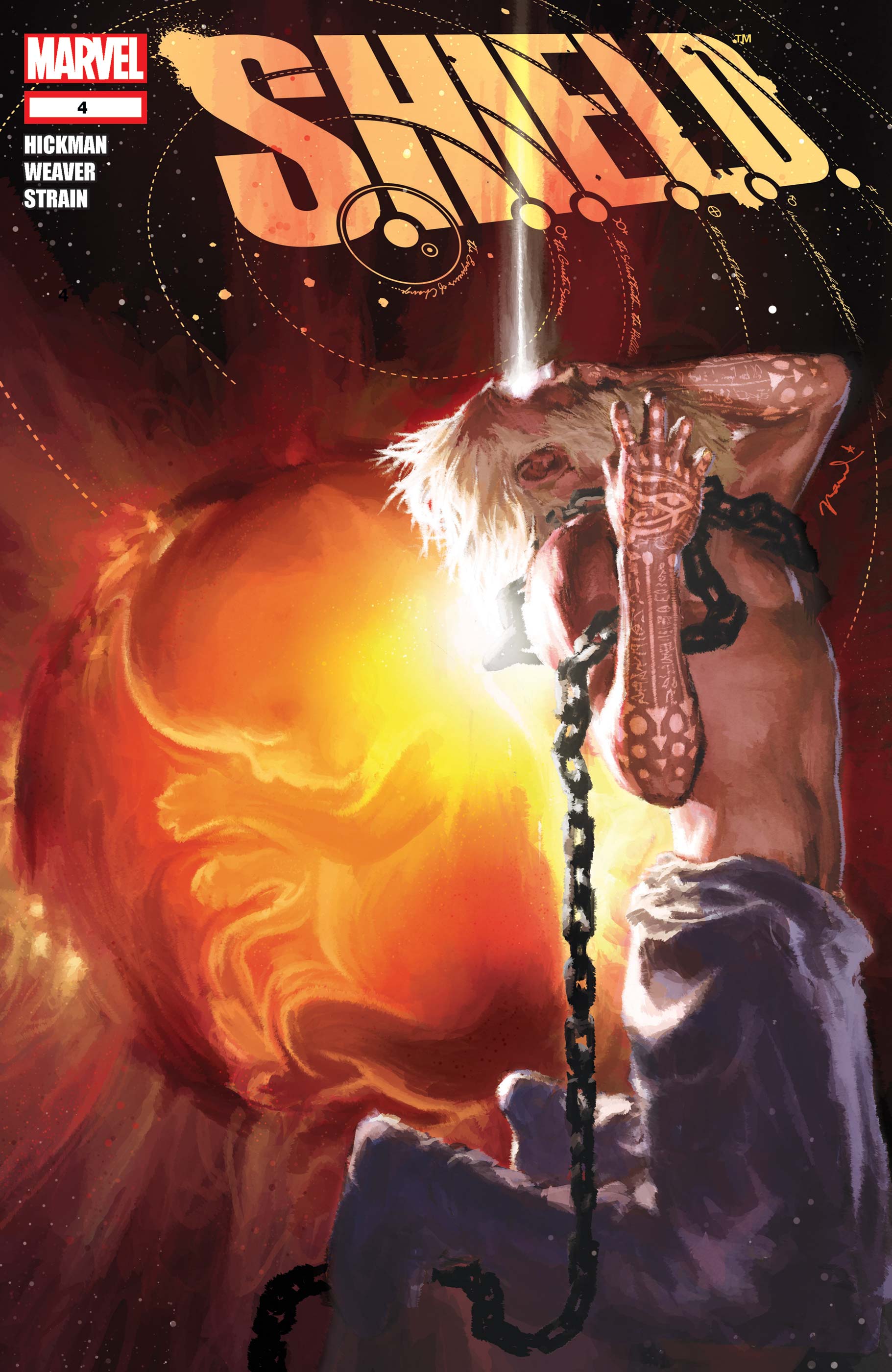 “THE MADNESS, THE STAR CHILD AND THE CELESTIAL MADONNA” The hottest book of 2010 continues! The world is still shaking from the revelations of Vol 1 3 and there are more where those came from. IN THIS ISSUE- The true history of Nostradamus, the defeat of a Celestial at the hands of a mortal man and HOW THE WORLD ENDS! Oh, and Jonathan Hickman (FANTASTIC FOUR) and Dustin Weaver (X-MEN) have also created the most troubling idea ever—THE FOETUS OF GOD!