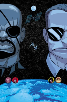 • Speaking of things falling from space: Nick Fury and special agent Phil Coulson are about to die painfully. • Unless Hawkeye, Black Widow and Spider-Woman save them!