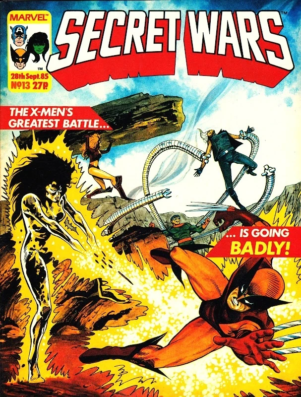 Elsewhere, the X-Men retreat from the active volcanic region, and although they failed to stop a group of villains Xavier is impressed that they were able to send Titania, Molecule Man, Absorbing Man, and Doctor Octopus packing. However, instead of returning to base, Xavier tells them to follow after their foes while he, Magneto, Storm and Nightcrawler rendezvous with them. Meanwhile, aboard the villains' craft, they care for the Molecule Man, who was seriously wounded by Wolverine's claws. Seeing Owen's condition from the monitors at Doombase, Volcana rushes to the Enchantress and asks the Asgardian sorceress to teleport her to Owen's side. When Volcana tells Amora that she is willing to do anything, the Enchantress teleports her away, satisfied by this offer. Volcana appears within the ship just as the two containing the X-Men and Magneto attack. During the course of the ensuing battle, Wolverine manages to chop off the Absorbing Man's arm while he is in the form of stone, but is burned badly by Volcana. Outnumbered and outgunned, Volcana calls a strategic withdrawal and uses her powers to cover their escape. At that moment aboard Galactus' ship, Doctor Doom continues to search for something that will allow him to defeat Galactus and the Beyonder. However, his plan to create a distraction by creating volcanic eruptions on the other side of Battleworld has backfired and has succeeded only in alerting Galactus to Doom's presence. Locating the intruder, Galactus uses his power to violently eject Doom from his ship.