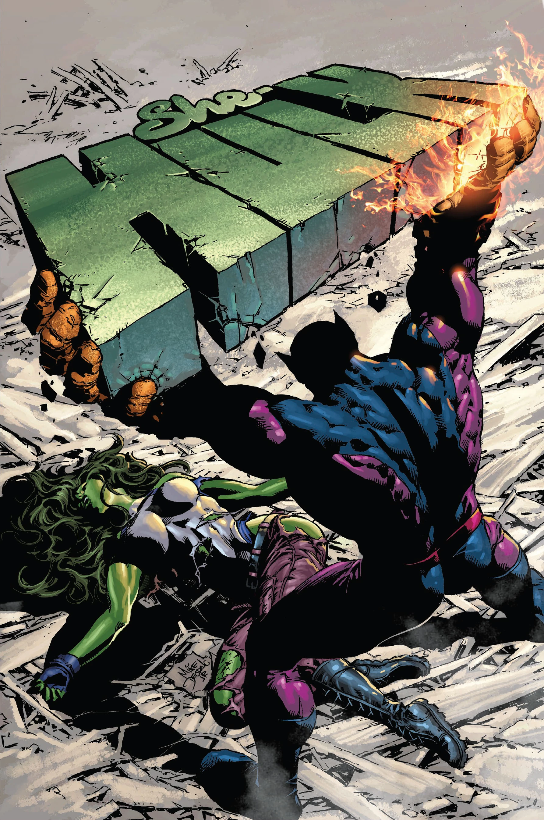 Okay, we know that Jazinda, She-Hulk’s fellow bounty hunting partner, claims she’s not part of the alien invasion…but can you ever trust a Skrull? Especially one that’s the daughter of the infamous Super-Skrull? Months of accusations and mistrust come to a boil as our gamma-powered glamazon leaps into this year’s biggest event!Notes