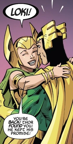 Loki eventually returned, and when Thor was on trial for disrespecting the rule that no god could dwell Midgard without the consent of the gods' majority, Sigyn came to inform her husband, who faked to at last return her love. At the trial, Sigyn was among those to allow him in Midgard, as Loki enraged at the idea of having Thor locked in Asgard with him.[15]