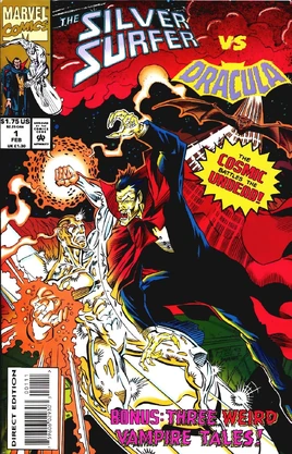 The Silver Surfer meanwhile has realized that he battled Dracula without previously knowing of his existence until this day and wonders if the vampire lord did not manipulate him. Returning to Dracula's church, the Surfer attempts to attack him again but is stopped by Domini.
