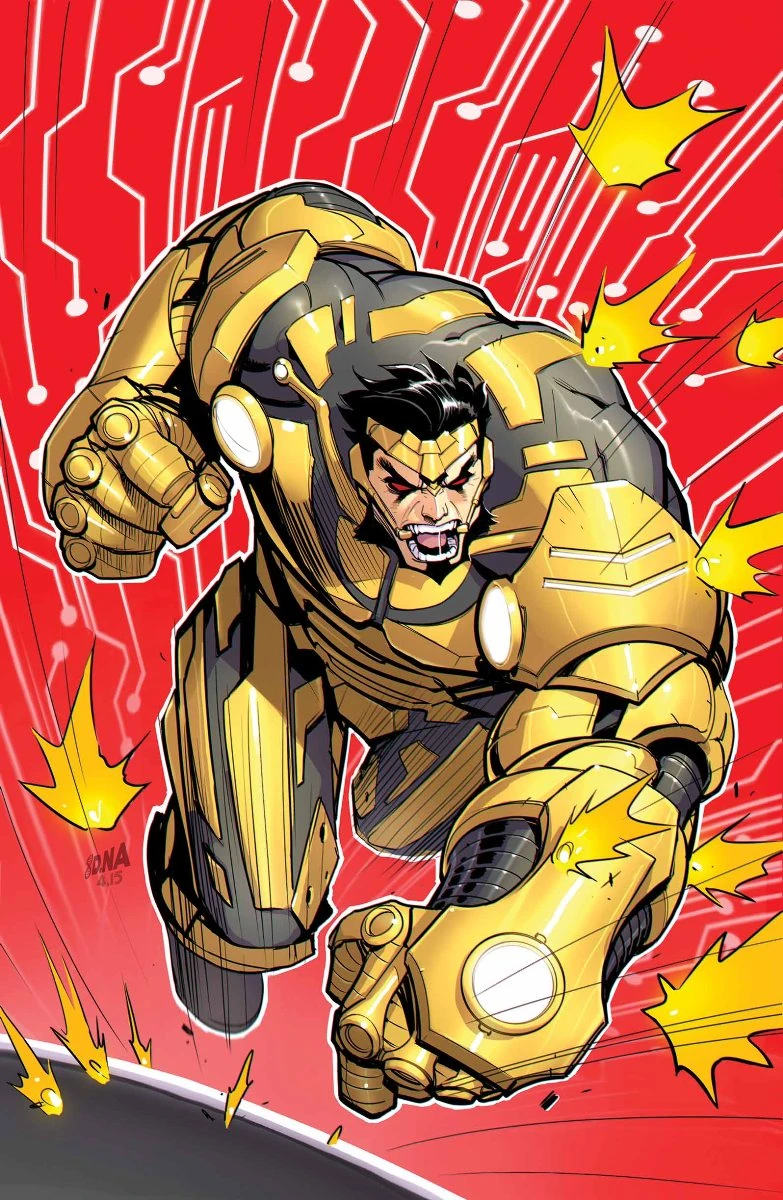Bulletproof teamed up with Wicked after the X-Men sent their own group to Genosha to retrieve their captive teammates. He yet again faced Rockslide and Thunderbird but outpaced them in order to catch Wolfsbane after she was hit by a lightning bolt from Storm. Using his body to break their fall, they were intercepted by Ink. Bulletproof fought him off when he and Wolfsbane saw that the genegineer Aldus Kluge resurrected Cameron Hodge. Ink used his bio-hazard tattoo on Bulletproof and caused an explosion which threw Locke into Hodge causing him to also be infected by the Transmode Virus. Bulletproof was transformed, which allowed him to extend his hand out to drill in Kluge killing him.[3]