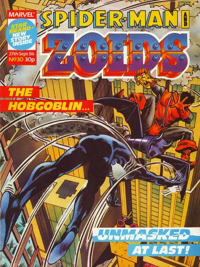 Elsewhere, Flash Thompson watches some kids play football and once again wonders where he went wrong in life. He thinks about how he screwed things up with Sha Shan and wonders if Betty is only using him to get back at her husband. His thoughts are interrupted by someone whose appearance comes as a shock to Flash. Meanwhile, Spider-Man is swinging across the city when his spider-sense goes off. He wonders if it's the Hobgoblin, but it is actually the Human Fly. Before the villain can attack, a garbage man shoots him in the back from behind. The garbage man shouts "Justice is served", the battle cry of the Scourge of the Underworld. By this time, Spider-Man is attacked by the Hobgoblin, leading to a chase across the city. The Hobgoblin lures Spider-Man to the docks so he can unleash the full fury of his finger blasts and pumpkin bombs. Expecting an explosion, Spider-Man dodges one bomb, but instead, it sprays him with a gas that nullifies his wall-crawling abilities. This does little to shake the hero, who uses his webbing to whip a metal pipe at his foe. As the Hobgoblin dodges the projectile, Spider-Man leaps in for the attack.