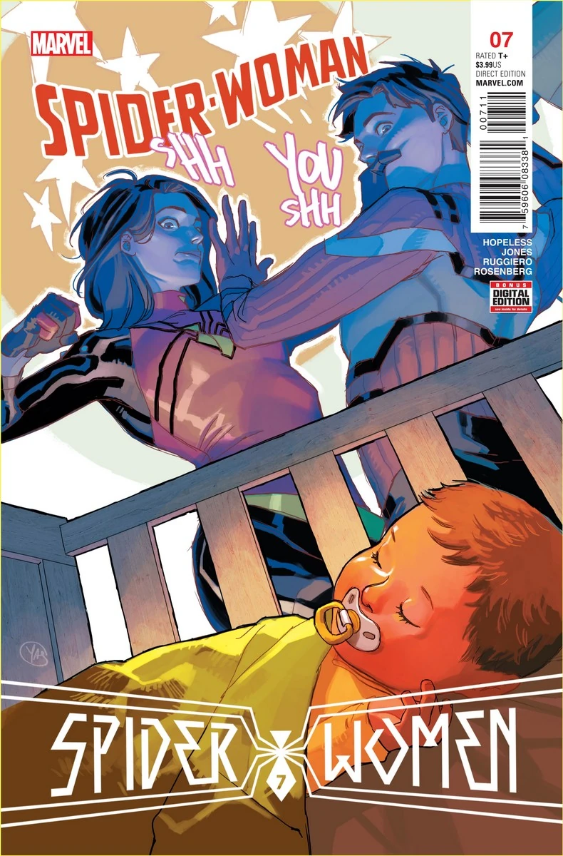 Jessica Drew returns home to her infant son, Gerry, and superpowered deadbeat babysitter, Roger (a.k.a. Porcupine), to find that Jesse Drew is also there. Forced to act civil in front of Roger and Gerry, Jess pretends to be Jesse's sister until Roger leaves. They fight but stop when Gerry wakes and cries.