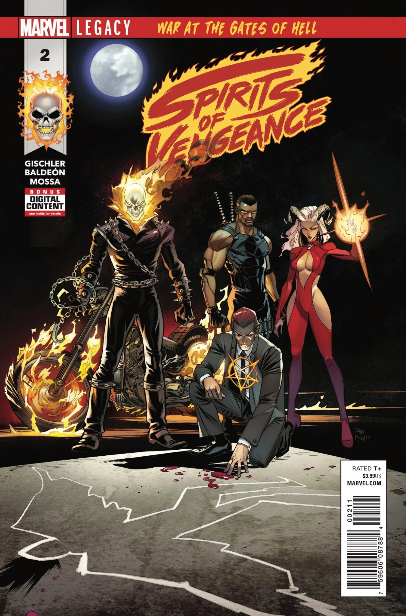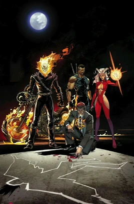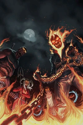 Someone's unearthed a weapon that can the tip scales in the war between Heaven and Hell… And an ancient summit known as the Covenant is the perfect place to use it! Johnny Blaze, the Ghost Rider, joins forces with Blade, Satana and Hellstorm to unravel the plot against God himself. The supernatural corners of the Marvel U will never be the same again!Notes