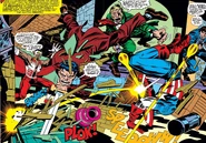 Rogers dodging gunfire from Zodiac troops in Captain America #449