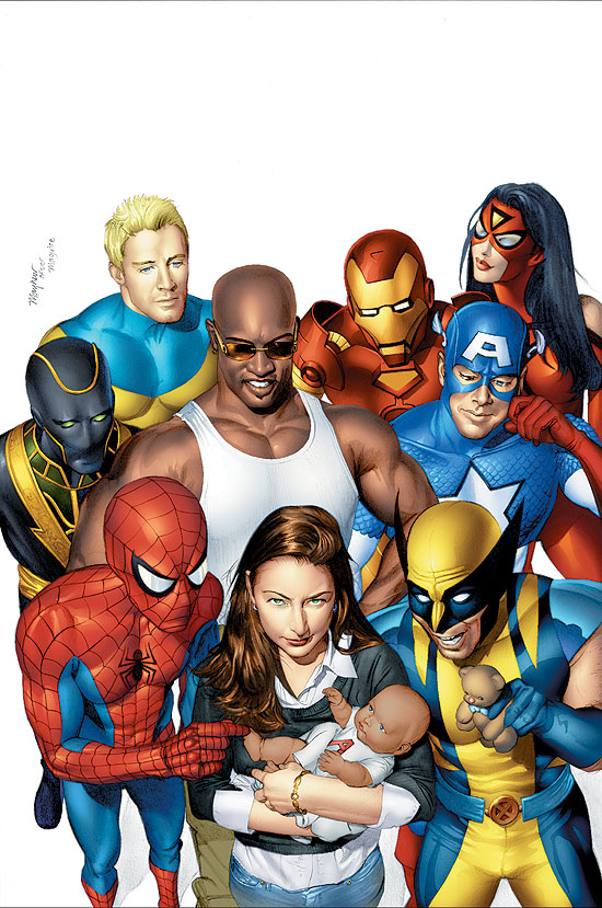 She had a meeting with Kat and Jameson regarding the emergence of a teen superhero team that seemed to be mimicking the Avengers. She met with Iron Man and Captain America who told her more about the teen heroes. [10] However, when they find the team they are attacked by Kang the Conqueror who threatened Iron Lad to return to his own time or it would change history and Jessica found herself back in her Jewel outfit and was no longer pregnant. Iron Lad complied and everything return to normal.[11][12] The Avengers tell the young heroes parents about their children being superheroes, while Jessica personally visits Cassie Lang mother Peggy Rae .[13][14] Kat wished to get an exclusive on the Young Avengers for the Bugle and asked Jessica to locate and ask them if they will comply.[15][16] She visited them and found all about their lives before becoming heroes and particularly connects with Kate Bishop who revealed that she had been raped.[17]