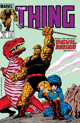 - The Devil Dinosaur movie is based on the character Devil Dinosaur a creature that actually exists on Earth-78411, as first seen in Devil Dinosaur #1. However at the time of this story nobody on Earth-616 knows that Devil Dinosaur actually exists. Devil Dinosaur first travels to Earth-616 in Fallen Angels #4.