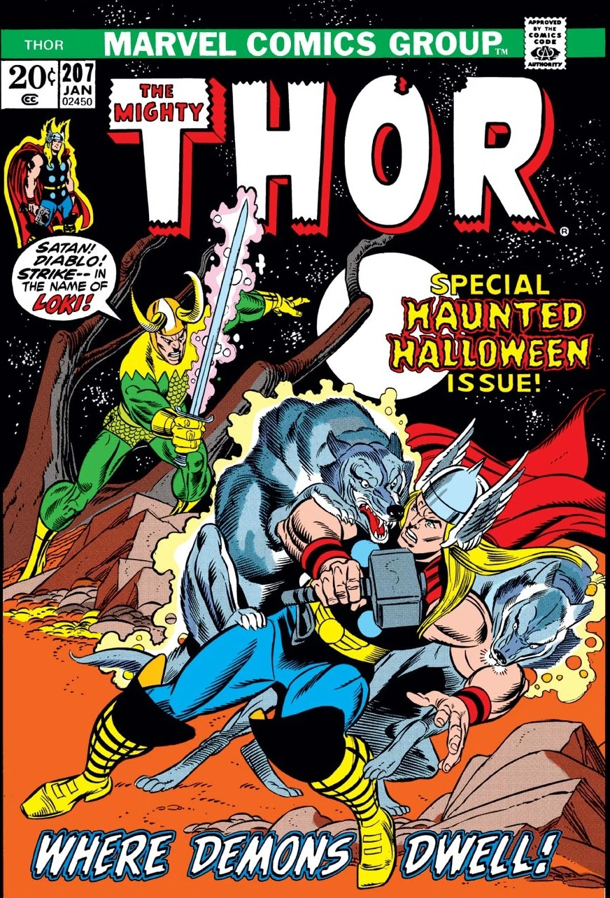 Thor has followed the Absorbing Man to Vermont, which is just beginning its Halloween celebration. Thor manages to defeat him by knocking him into the lake, where he absorbs the properties of water and begins to flow away. But then, Loki arrives, who has by mystic means transformed two dogs to kill Thor. Thor defeats the dogs, then Loki summons the Firesword. Thor manages to defeat Loki with a lightning strike, which has the side effect of blinding him. Later, Thor seeks out his female companions, but discovers that Sif left with Karnilla to search for Balder.
