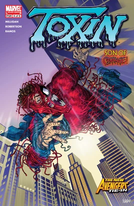 Although Pat attempted to kill himself by jumping in front of the train, Toxin came out and saved him. Later, Pat started a "Toxin Diary" In the Museum of Modern Art, Wrecker was looking for his substitute crowbar with Piledriver and caused an explosion. Meadows told Jim where Pat was staying before they learned about the explosion and before Toxin went to the scene and defeated Wrecker and Piledriver. Afterwards, under the alter ego of Larry again, Pat encountered Gina and Edward and saw their son take a few steps. After that, Toxin came to the conclusion that Pat should give him something in return for everything that he was doing for him.